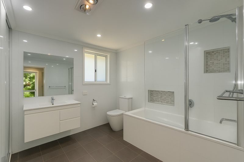 - Stylishly updated bathroom with a bathtub and combined laundry