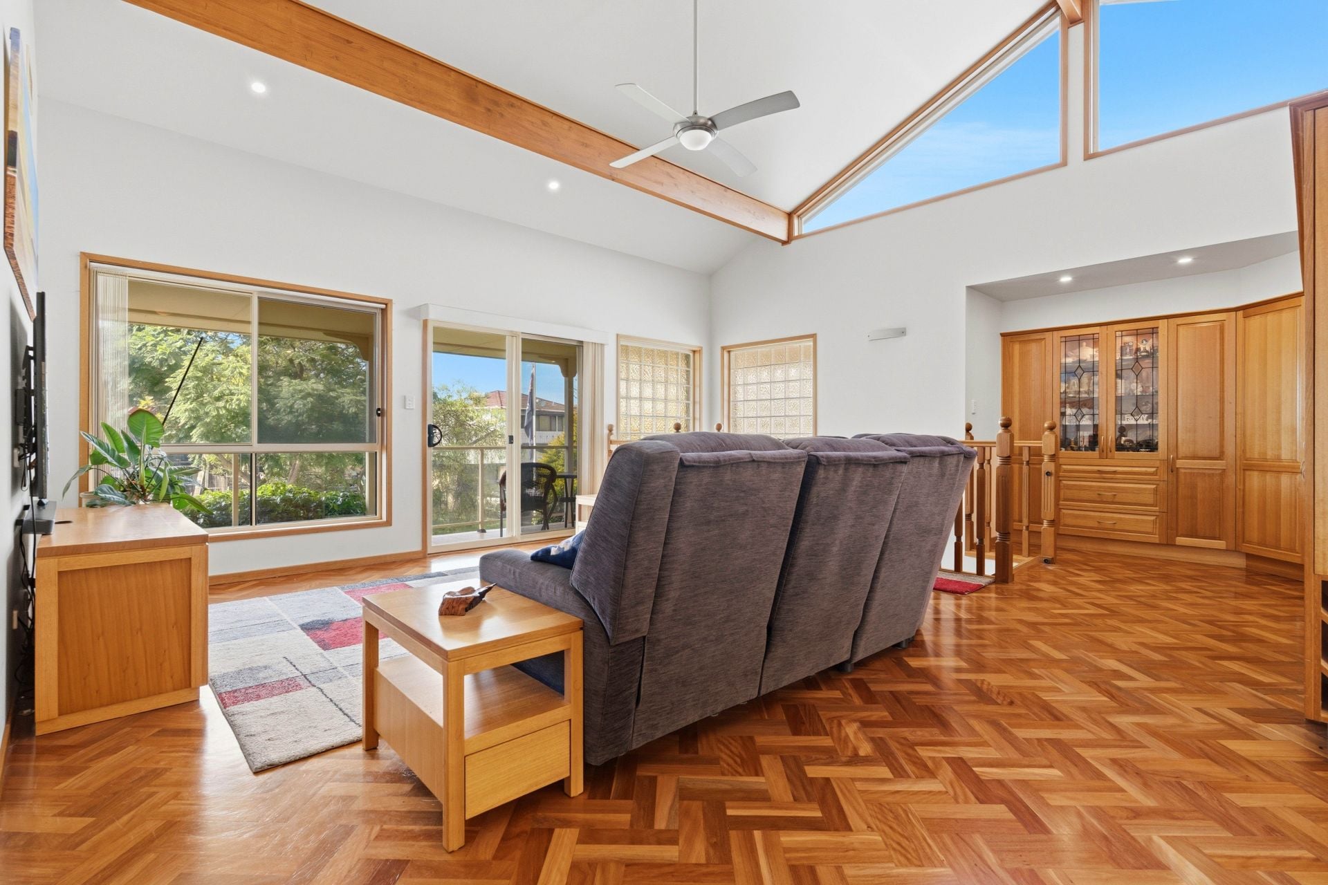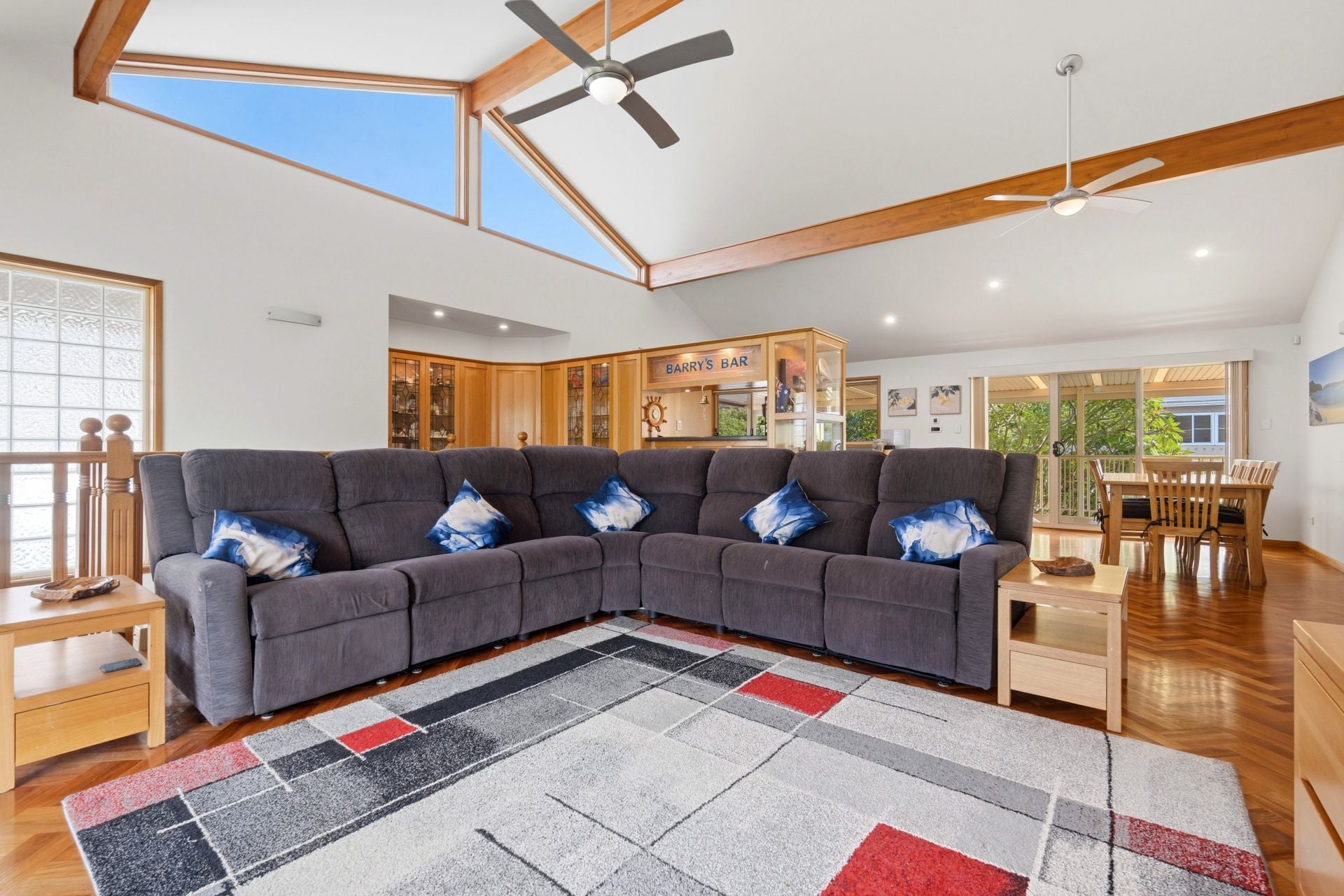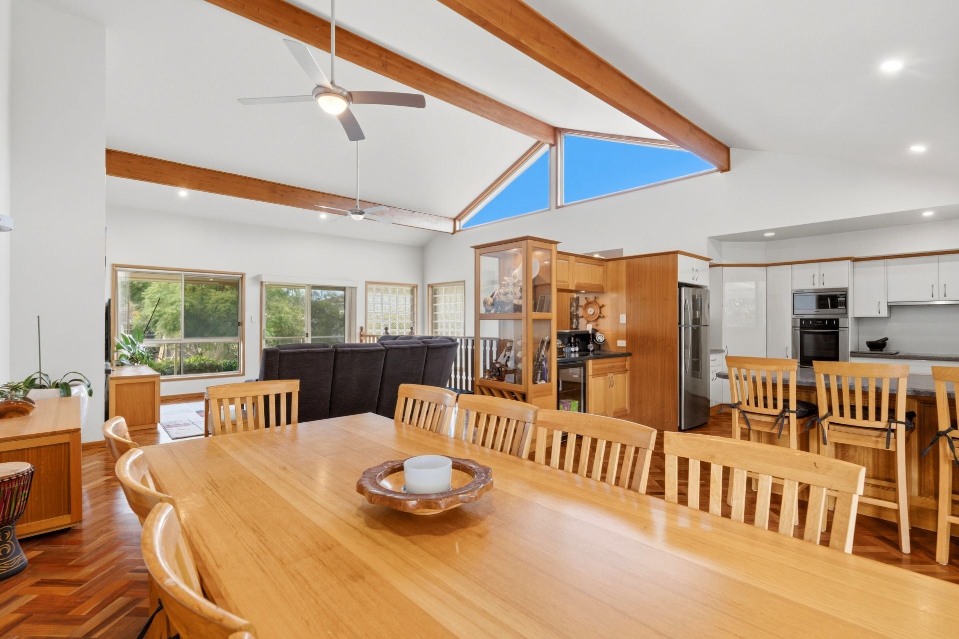 Spanning two spacious levels, the home features four generous bedrooms and three well-appointed bathrooms, ensuring ample accommodation for large families or weekend guests. The interiors are bathed in natural light, with expansive living areas that flow seamlessly toward the private outdoor decks & entertaining oasis.