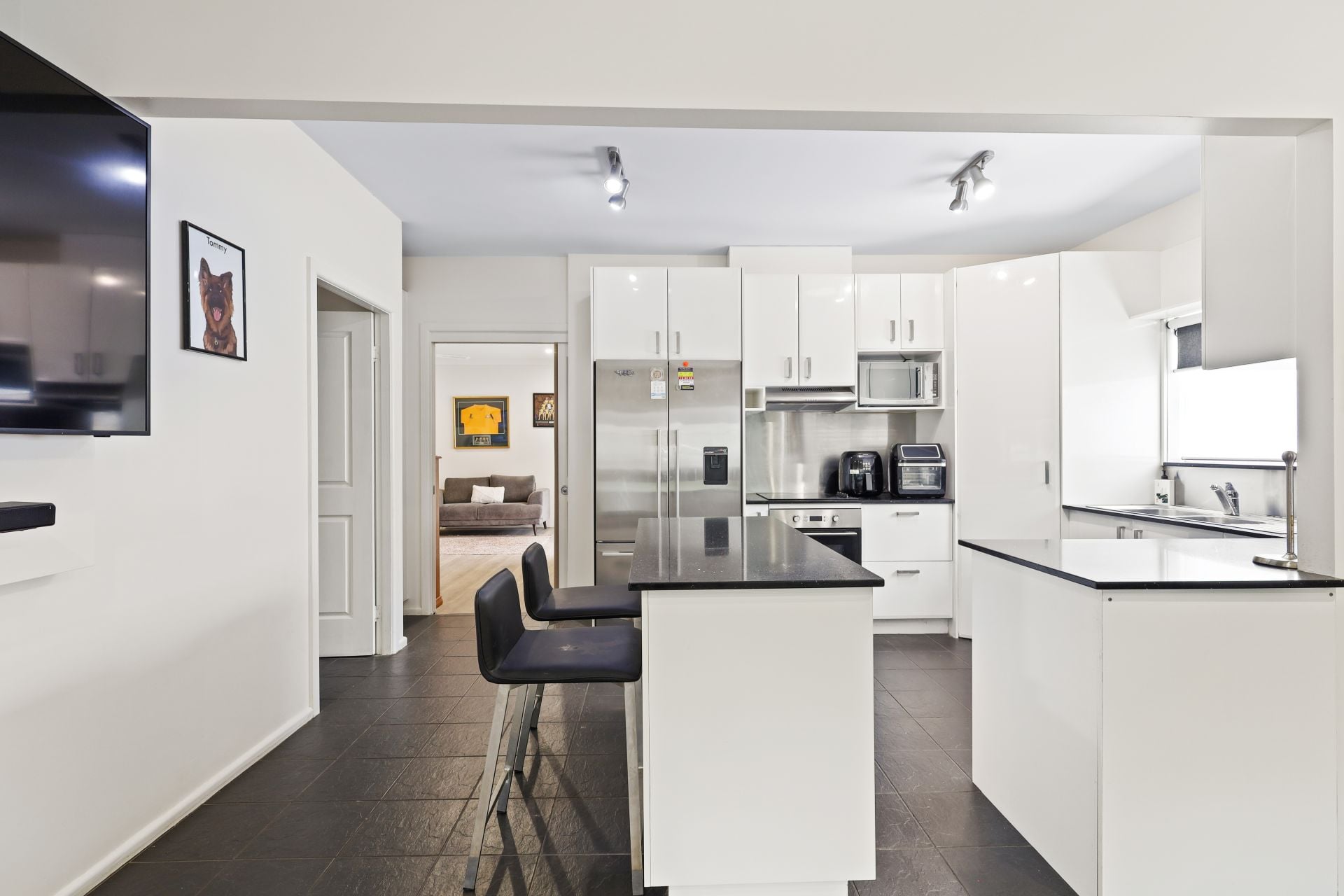 - Open-plan living and dining areas